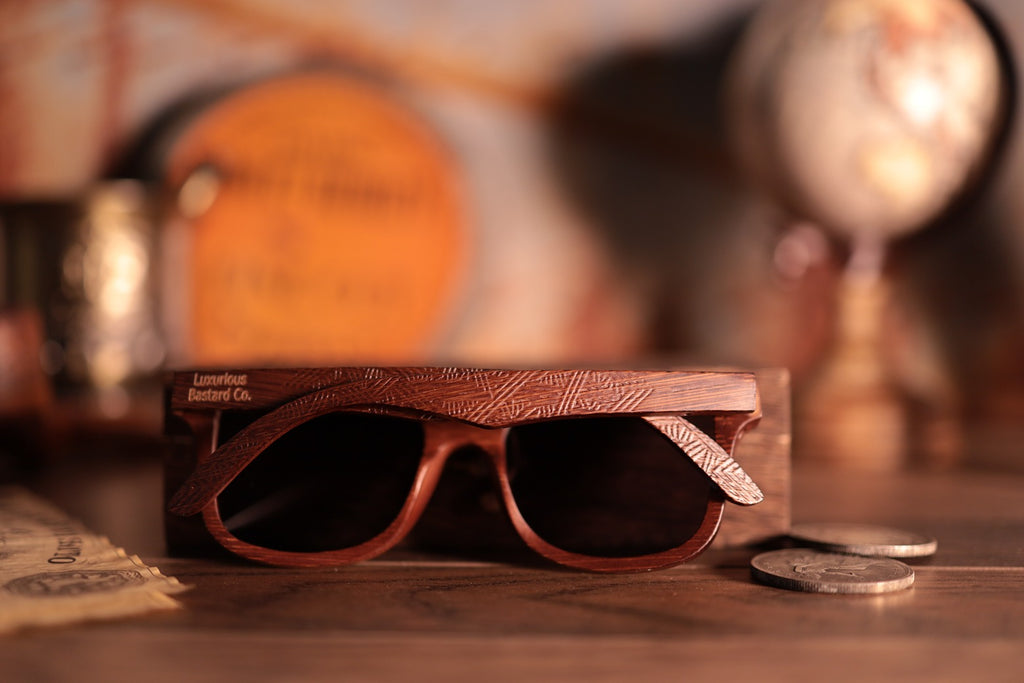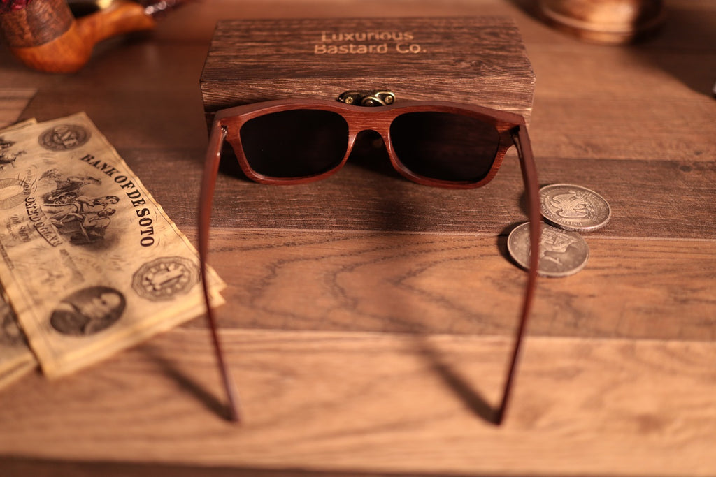 Limited Edition Luxurious Sun Glasses -More On The Way- These are very good quality... made from light weight black walnut. Using precision UV400 lenses and flex-light hinges finished off with luxurious bastard laser etching. Comes with wooden box, cleaning cloth and a glasses bag. Make sure to submit photos so I can future you on my social media's