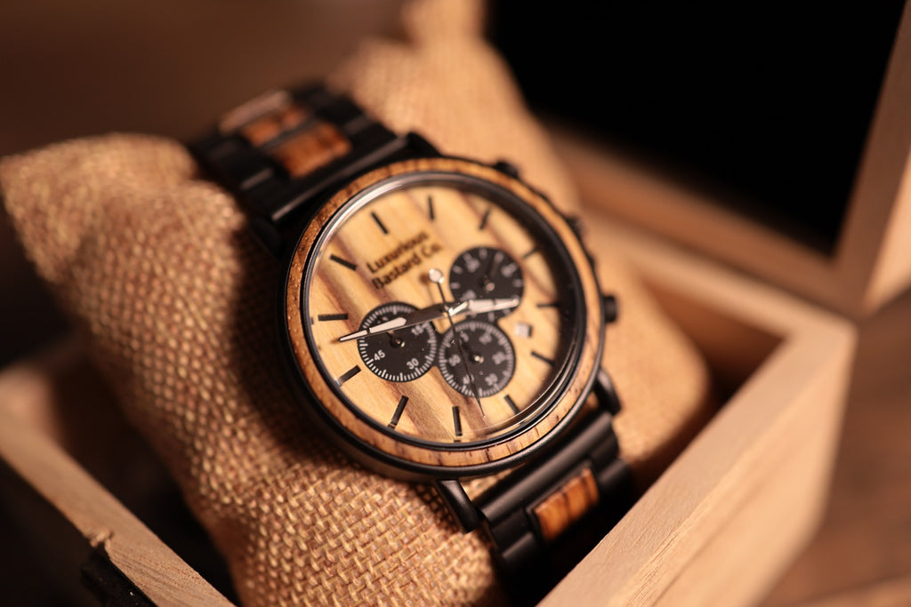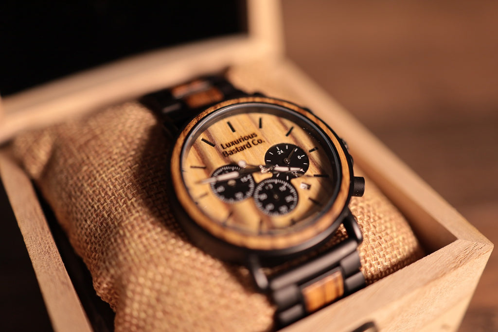 Limited Edition Luxurious Bastard Watch's Dark Rose Wood & Light Rose WoodHere it is finally....in all its glory. These are hand made, quality quarts movement, laser etched face and stainless back cap. Wooden inlay design. Double clasp style band that is also adjustable. (comes with tool) Collector box included.Make sure to send in pictures rocking the watch to get featured.